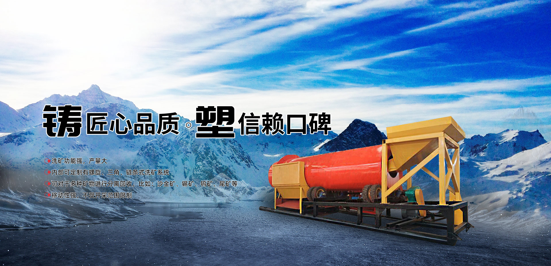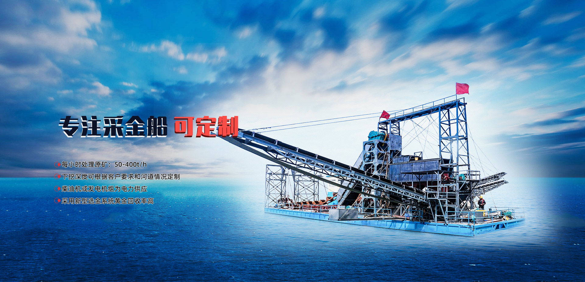 主打產(chǎn)品 根據(jù)礦料定制:選礦設(shè)備 沙金礦開(kāi)采設(shè)備 尾礦回收設(shè)備 采金船 離心機(jī)等產(chǎn)品